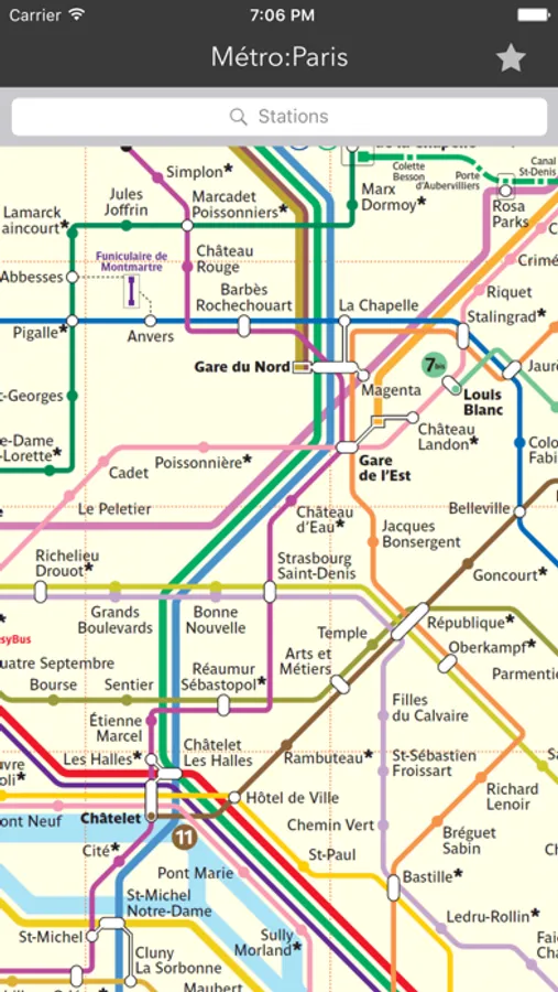 The Paris Metro in an offline map. Zoom in, zoom out, scroll around. Quick, easy, and there when you need it! And now with the official schedules!