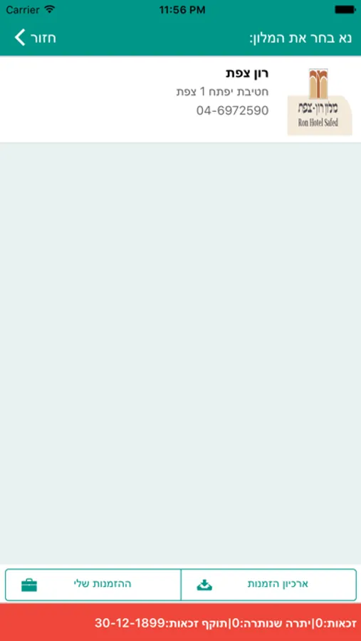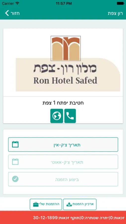 הזמנת לינה בתפקיד מול בתי מלון ואכסניות ברחבי הארץ