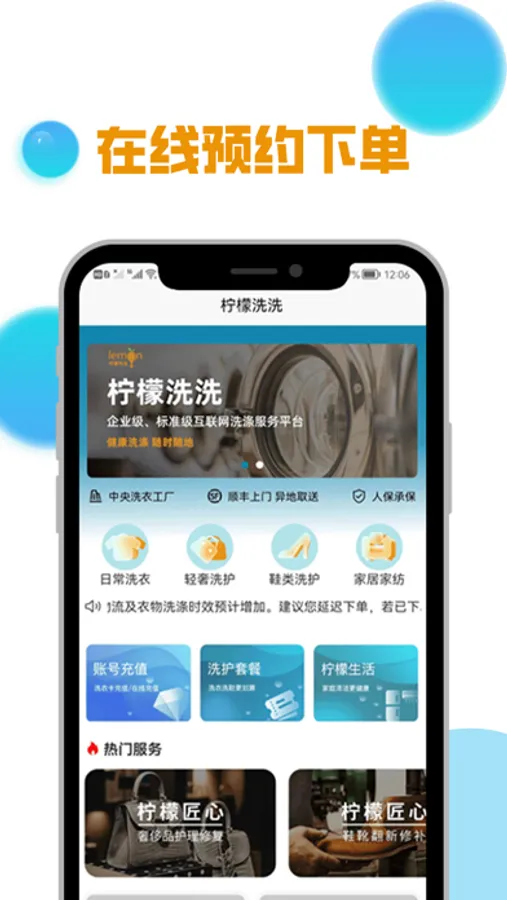 “柠檬洗洗”以“互联网+标准物流+中央工厂+后置化分拣+智能诊断报告”,实现用户手机下单预约、顺丰上门取衣、中央工厂洗涤、包装送回的洗涤服务模式,让用户随时随实地可以健康洗衣。