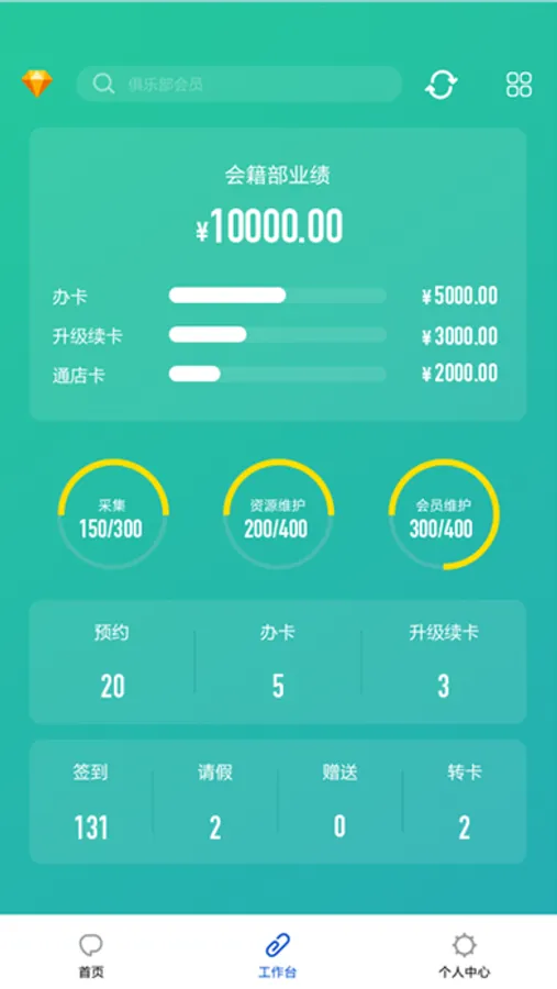 一款专注于健身房内部管理的APP,集员工管理、会员管理、商品管理、市场开发于一身。