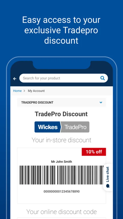 • Easily access your exclusive TradePro in-store barcode and online discount code to save money on every shop