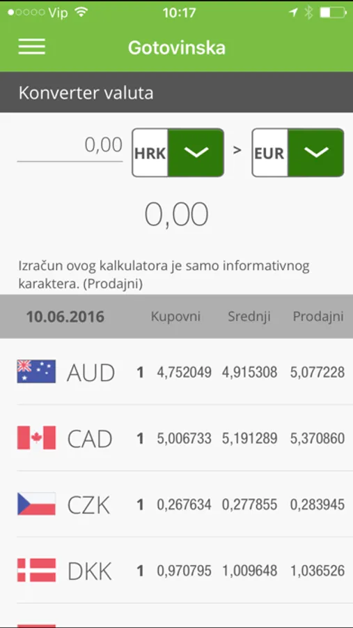 - pregled prošlih i budućih tečajnih lista i korištenje tečajnog kalkulatora