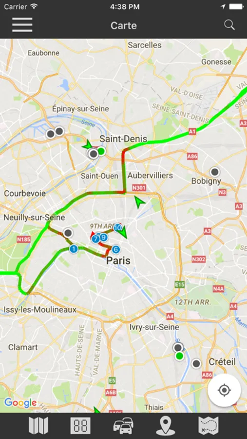Grace à Google StreetView, visualisez l'emplacement du véhicule comme si vous étiez assis à place du chauffeur.
