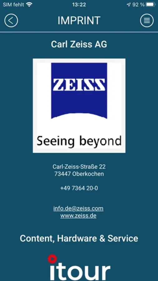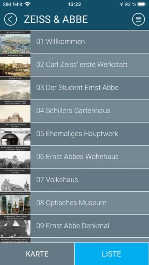 • Scrollable menu list displaying all the stops; individual stop selection possible• Several images for each stop provided as a slide show