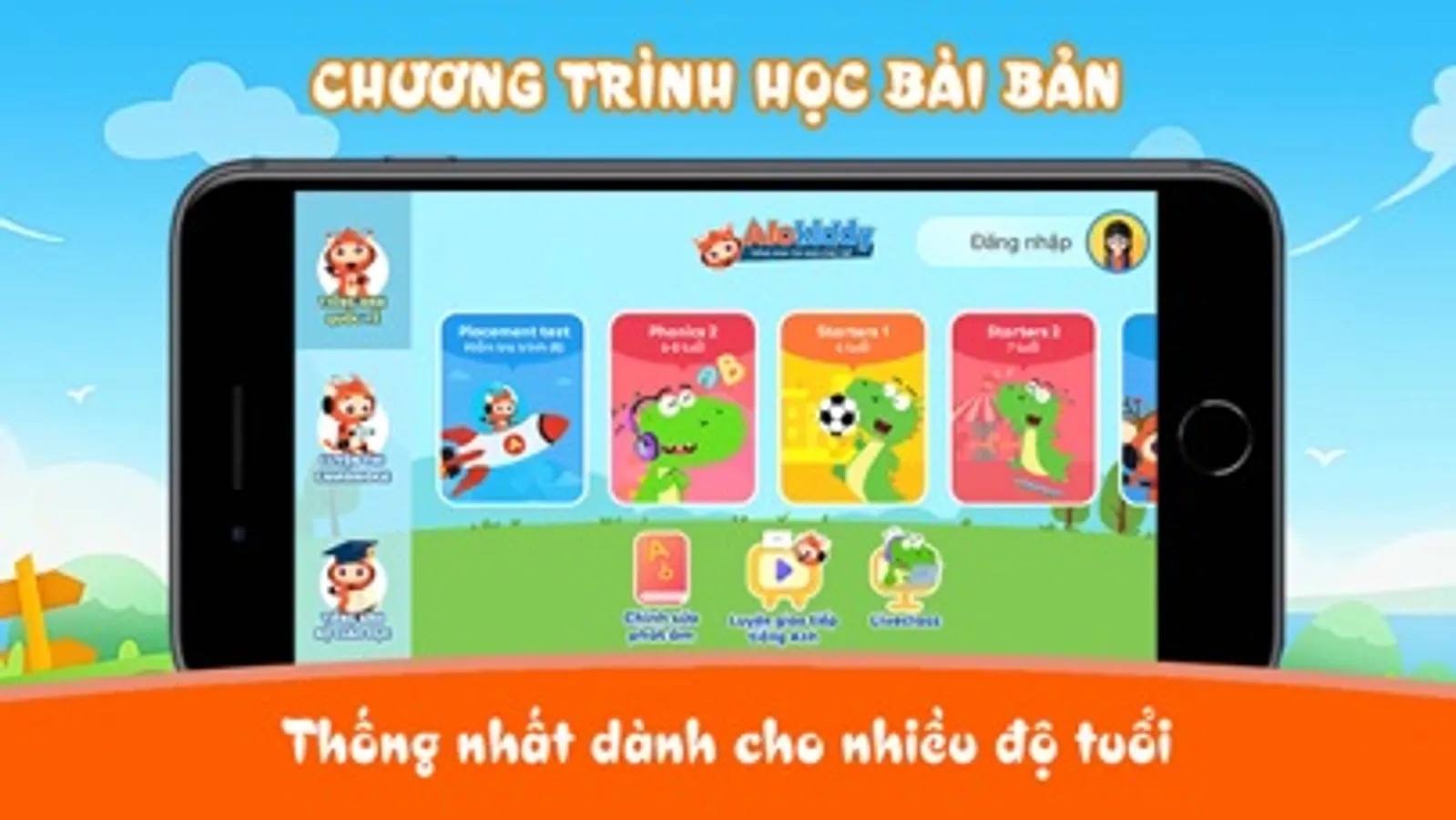 Alokiddy là một ứng dụng tiếng Anh cho bé uy tín, tiện lợi và chất lượng, với các khóa học tiếng Anh trẻ em dành cho độ tuổi từ 06 đến 11 tuổi, được xây dựng theo chuẩn Cambridge và chuẩn Bộ giáo dục, bao gồm:
