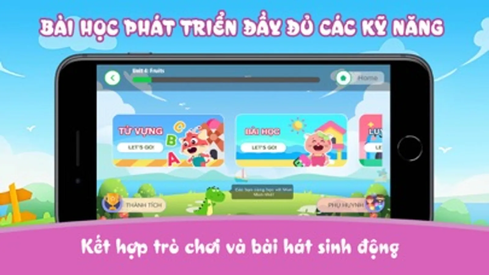 Được tích hợp đầy đủ trong mỗi bài học, giúp trẻ hình thành và phát triển toàn diện các kỹ năng tiếng Anh giao tiếp nghe – nói – đọc – viết.