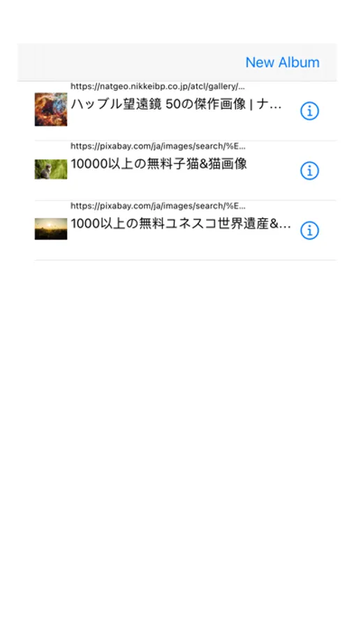 ダウンロードしたファイルはホームページ毎にアルバムとして管理されており、他のページでダウンロードした画像と一緒にになってしまう事もありません。