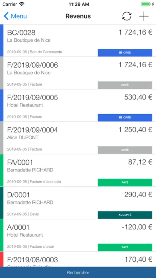 - Suivi de l’état de vos documents (créé, envoyé, payé, impayé)
