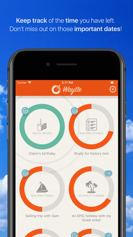 Waytte is an app that allows you to track the time remaining for important events in your life while sharing the expectation with the people you care about. Jump into the fully custom designed UI and start managing your time better with this productivity tool designed for people of all ages.