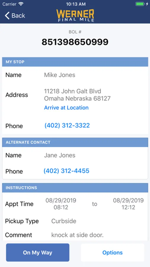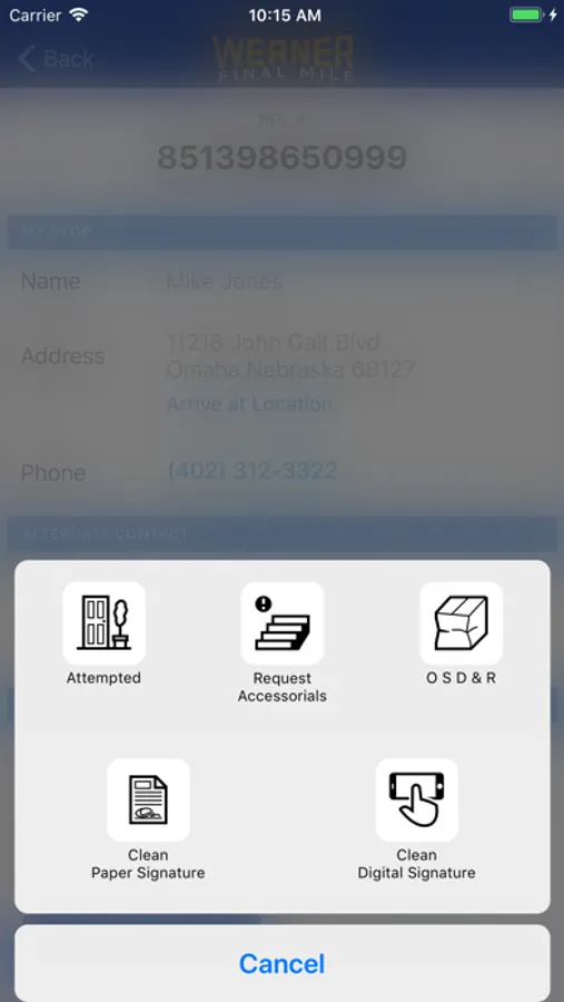 - Scan the barcode on the Bill of Lading to instantly view the Consignee's name, address and phone number, as well as the important Product information. Phone numbers are "Tap–N–Dial" so you can call ahead to ensure Consignee is present.