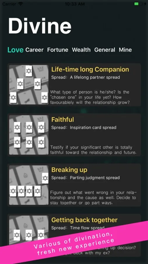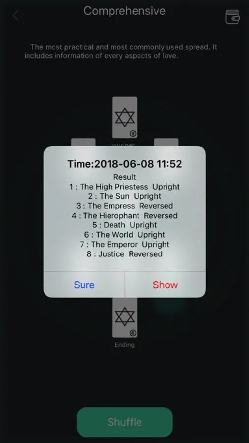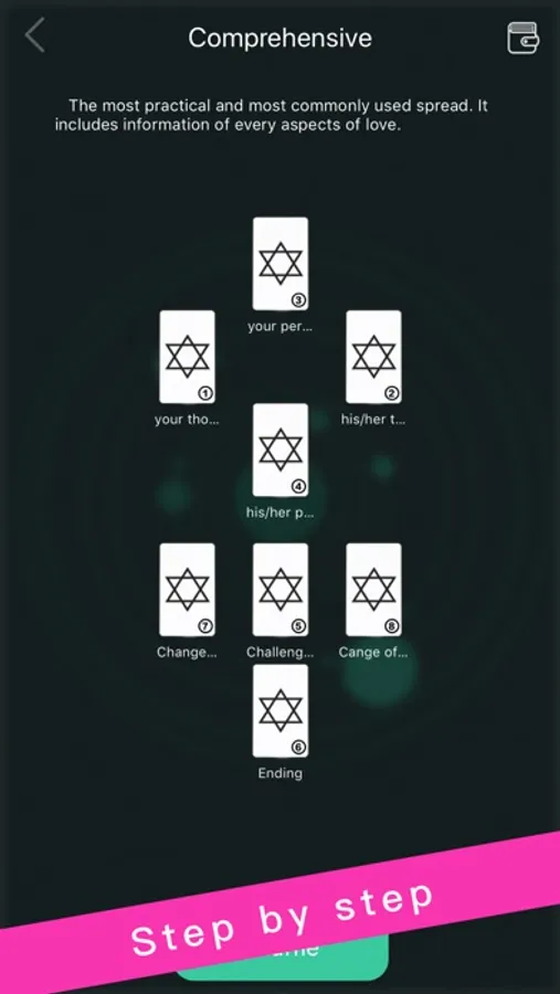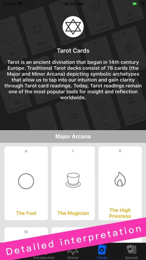 The tarot is most commonly viewed as a tool for divination. A traditional tarot reading involves a seeker - someone who is looking for answers to personal questions - and a reader - someone who knows how to interpret the cards. After the seeker has shuffled and cut the deck, the reader lays out the chosen cards in a pattern called a spread. Each position in the spread has a meaning, and each card has a meaning as well. The reader combines these two meanings to shed light on the seeker's question.