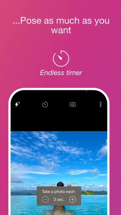 Solo modelling ; Mount your iPhone somewhere and pose as much as you want. PhotoBot will snap it all for you!
