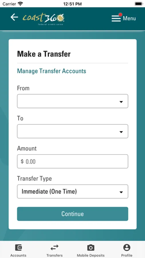 Use your existing Coast360 Online banking login to get started or, if you’re a first time user, create your login credentials right from the mobile banking app.