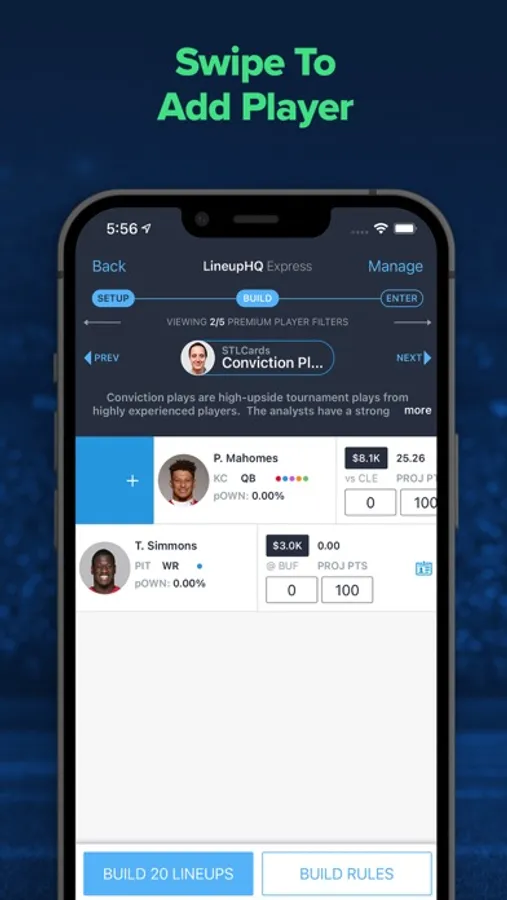 Spend less time building the optimal lineup and more time enjoying the games. Download LineupHQ Express for FanDuel now!