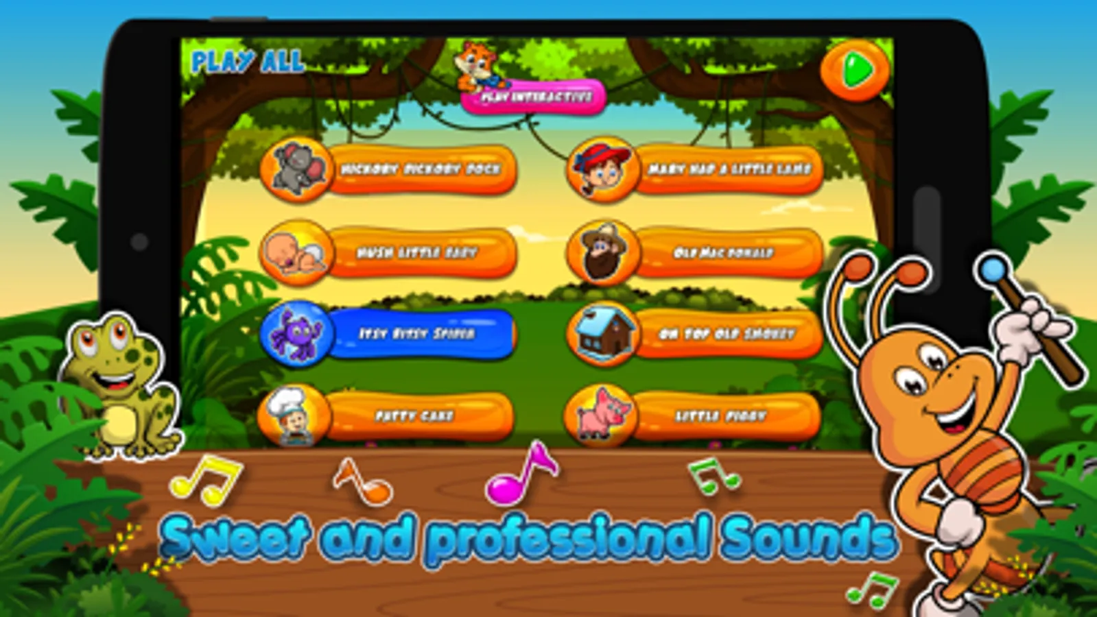 Featuring 24+ Beloved Nursery Rhymes. All full-length with rich interactive animations and lyrics. All of the classic full-length nursery rhymes you grew up loving! Easily sing along to your favorite tune with the on-screen classic original English lyrics. All professionally sung and beautiful animated scenes for your enjoyment! Nursery Songs we all loved growing up :)