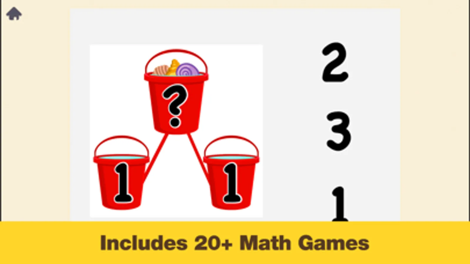 Kindergarten Math allows your child to build fundamental math skills while they are endlessly entertained. Your child will count, add, and sort their way through fun, simple, and engaging games. For ages 3 to 6.
