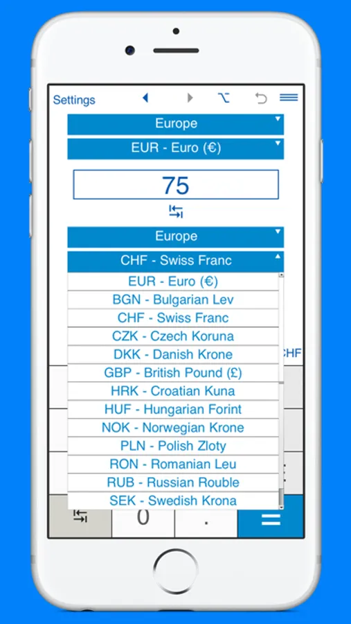 A handy app to convert between different currencies. Supports 32 currencies: Australian Dollar, US Dollar, Euro, Bulgarian Lev, Brazilian Real, Canadian Dollar, Swiss Franc, Chinese Yuan, Czech Koruna, Danish Krone, British Pound, Hong Kong Dollar, Croatian Kuna, Hungarian Forint, Indonesian Rupiah, Israeli Shekel, Indian Rupee, Japanese Yen, South Korean Won, Mexican Peso, Malaysian Ringgit, Norwegian Krone, New Zealand Dollar, Philippine Peso, Polish Zloty, Romanian Leu, Russian Rouble, Swedish Krona, Singapore Dollar, Thai Baht, Turkish Lira, South African Rand.