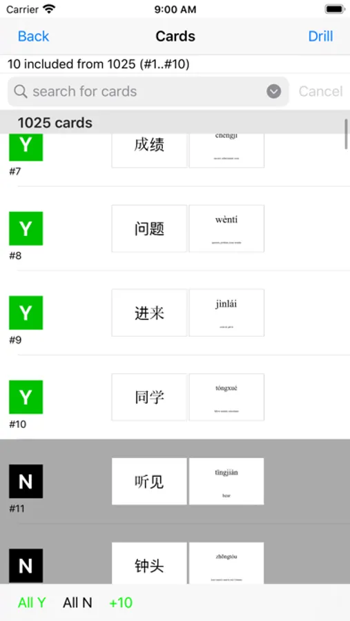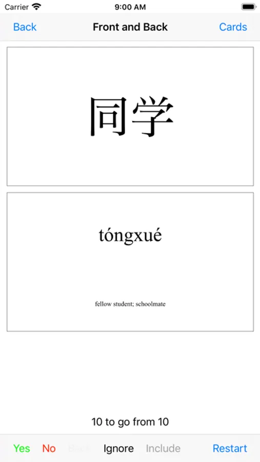 • almost 9000 cards with both a Simplified and Traditional version of each, and a Meanings and Readings version of each