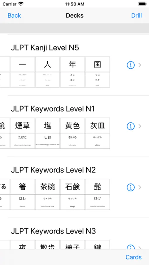 This app has great customer reviews and it is for learning the vocabulary and kanji required for all five levels of the JLPT (Japanese Language Proficiency Test).