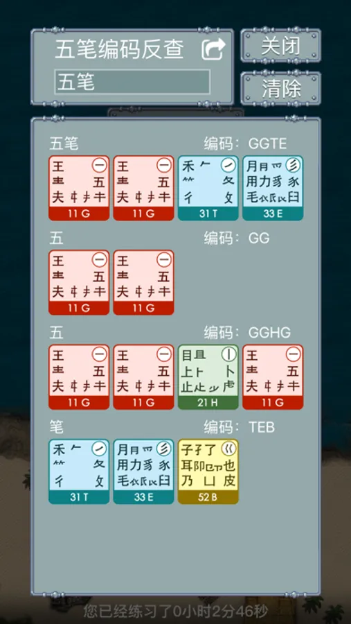 • 自带反查字典。输入字词就能显示五笔编码,更重要的是还会把相应的键位也展示出来,非常便于学习。