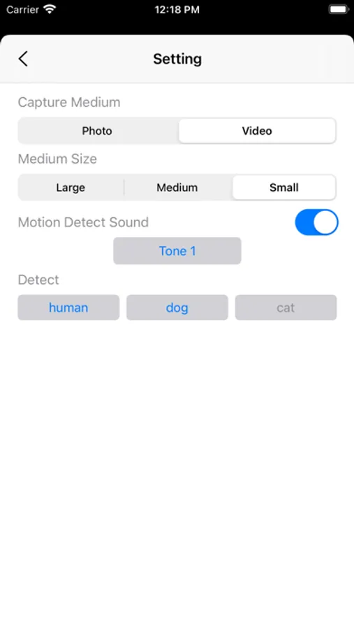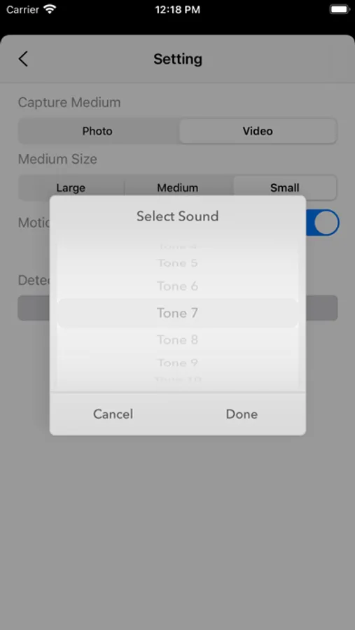 - All images/videos are stored inside camera roll / Motion Detecter album.