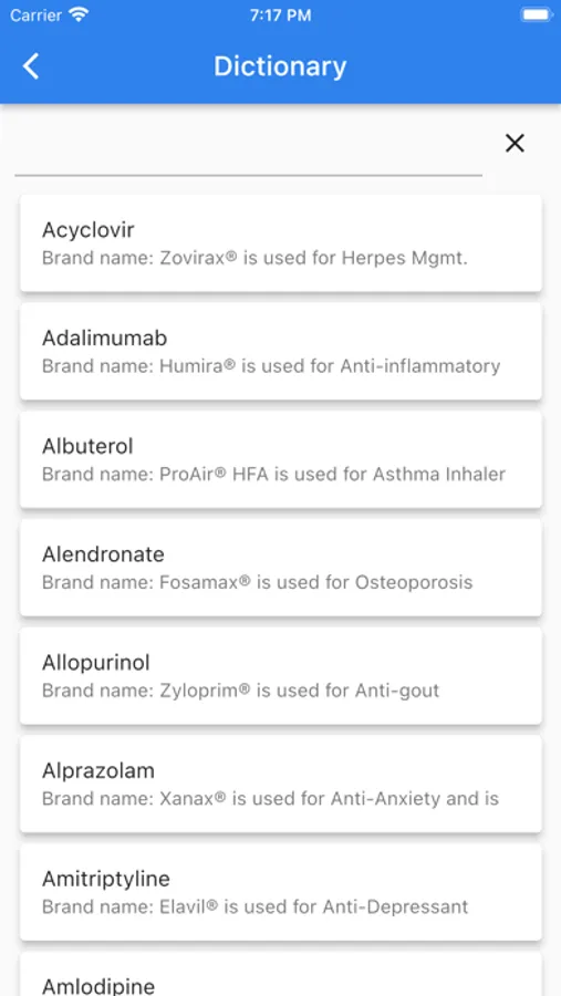 Dictionary Study - All drugs and information in a single list for browsing and searching