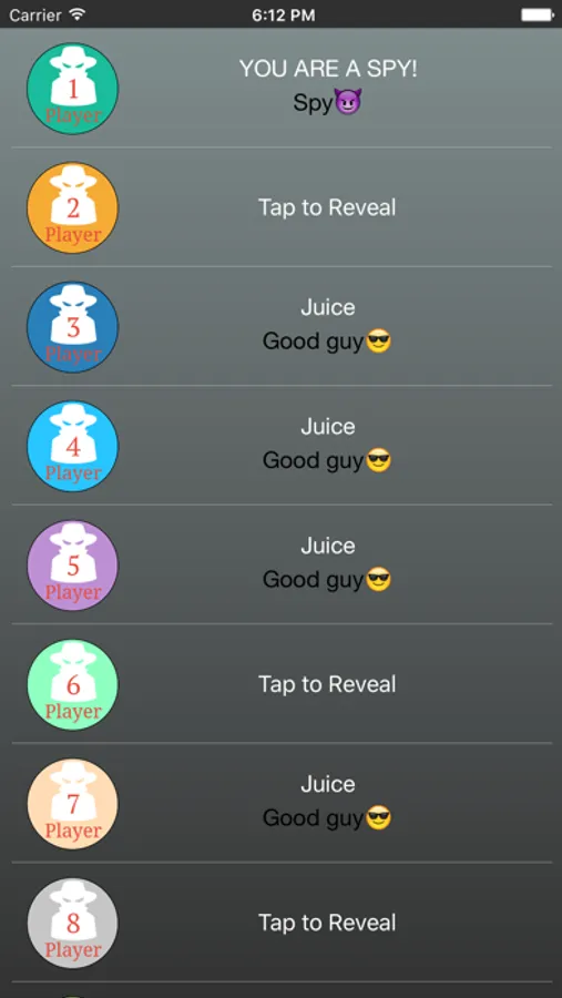Good Guys- Work together to figure out who does not know the main word. If you think someone is the outlier kill them. But don’t become too trigger happy because if you kill too many Good Guys spies win!