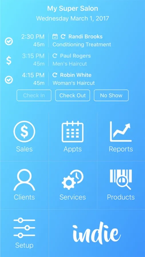 Indie is an all-in-one Point Of Sale (POS), appointment book, and credit card processor for the independent retailer and service provider. Indie helps new and well established retailers cash out clients, accept credit card payments, book appointments, while managing and growing their business with no monthly subscription fees.