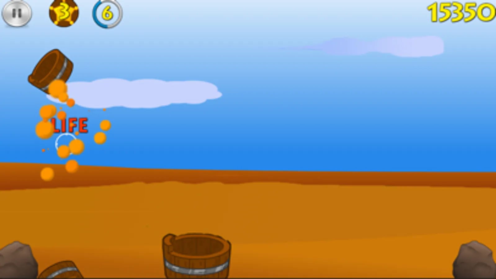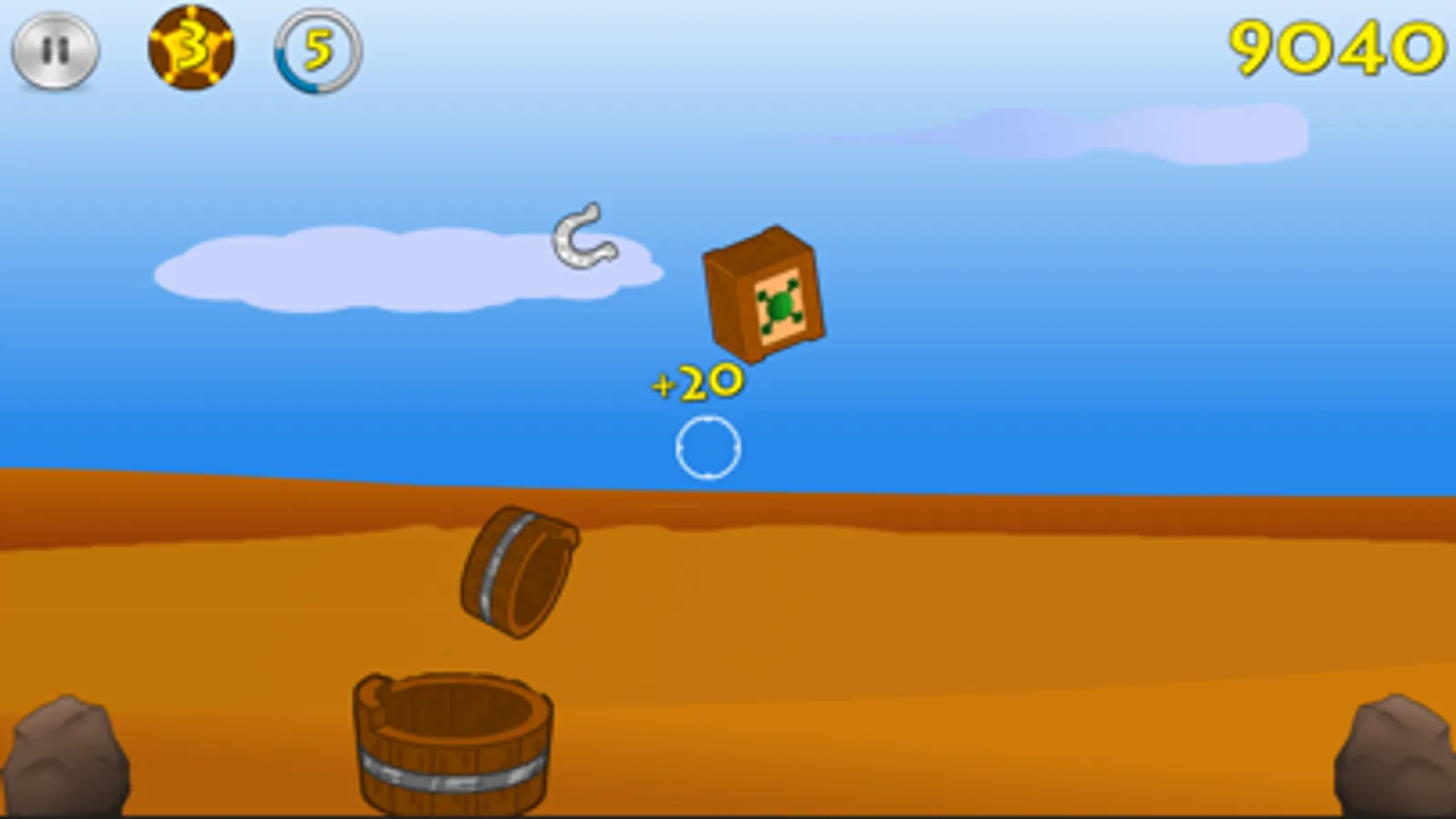 Grab ‘yer gun and get ready to shoot some skeet targets. Tap to shoot targets as they fly from various positions and angles. Be careful not to shoot the bombs or dynamite or you will lose a life. Most targets require more than a single hit to kill them. Hit a target to cause it to bounce and take more shots at it. Hit a target dead-center and you will be rewarded with a straight bounce which is easier to manage. Don’t miss though; or you’ll lose a life. Watch out for special targets as they affect game play. Land a target in the bucket below and get 2x points. Hit as many target as you can before you lose all your lives.