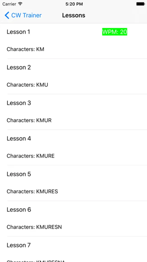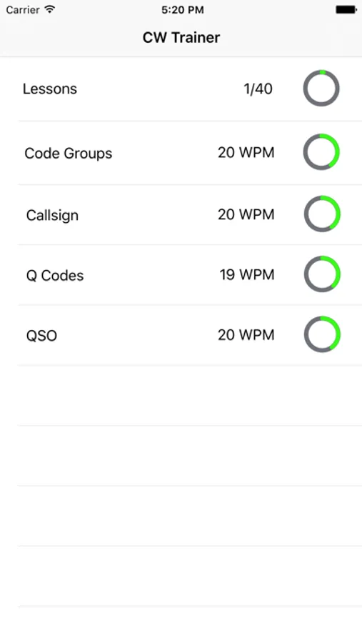 CW Trainer help you to learn the morse code with the Koch method. By this method you should start off just learning two letters at full speed and add an additional letter once you reach 90% proficiency.