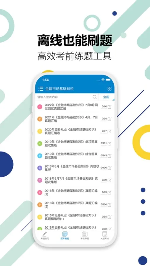《证券从业考试》是一款用于证券从业资格考试的学习软件。包含《金融市场基础知识》和《证券市场基本法律法规》两门考试科目的练习题目。