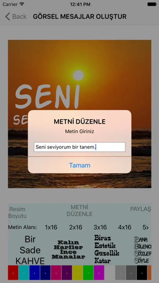 Metinlere görsellik katabilecek, mesajlarınızı estetik metinler haline getirebileceksiniz. Afiş şeklinde resimli mesajlar kullanın.