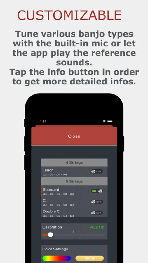 Simple Banjo Tuner is easy to use and provides an aesthetic and customizable user interface.