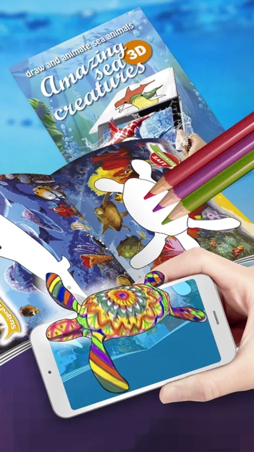 Sea animals will come alive in 3D colors and designs that you will create for them.