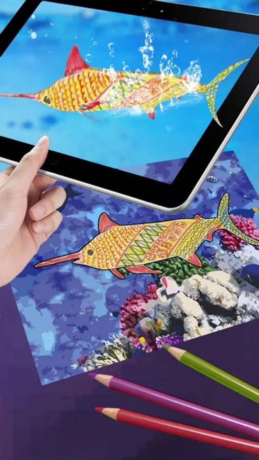 “Fish2Paint" mobile app is not used alone, but together with the live book, which you can order online or purchase in bookstores (you can find the book suppliers in your country on blueggvision.com).