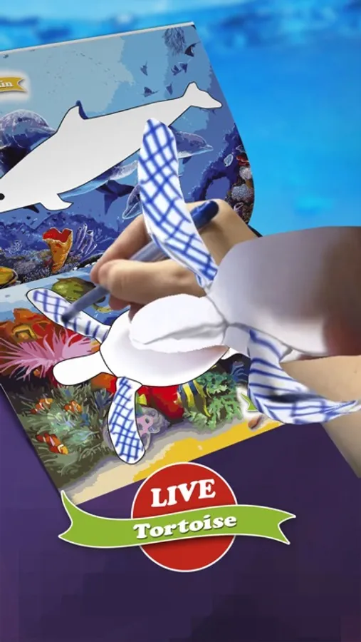 Don’t be afraid to use your imagination and experiment with designs and colors, perhaps, you will manage to create a real masterpiece. For the drawings that are marked with “Live” sign you may design and paint sea animals in real-time mode, holding your smartphone as you are drawing! And trust us, it’s a way more interesting! You may take photos and selfies along with your created masterpieces and share them with your friends. Have a joyful creative work!