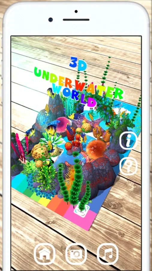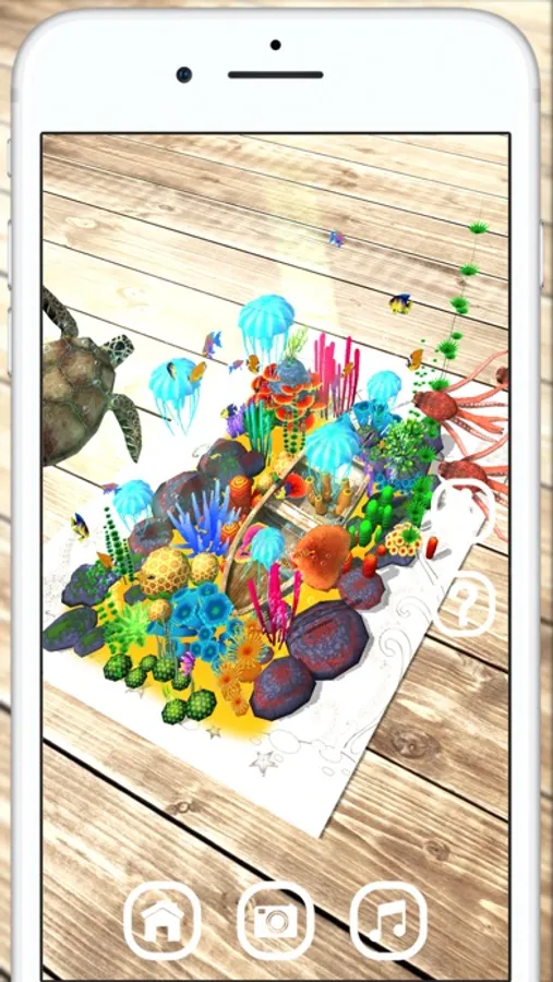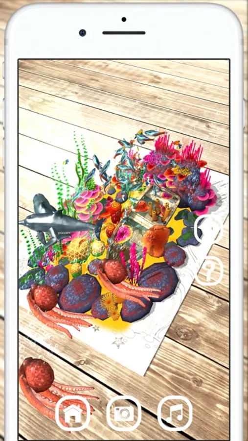 In the augmented reality scene, point the smartphone camera at the page of the book so that the underwater world scene appears.