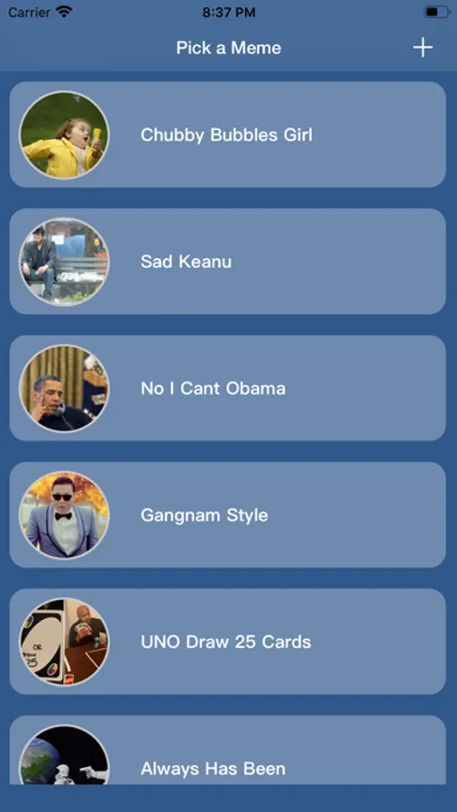 Create memes from your own photos or by selecting picking one image from the Home screen.