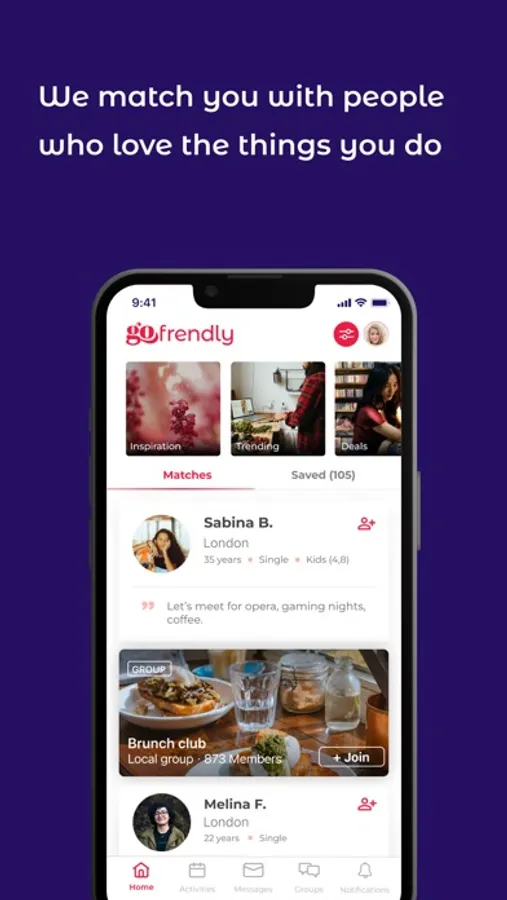 gofrendly is designed to help women make new friends in their local area. Our app makes it easy to connect with other women who have similar interests and lifestyles, allowing members to build meaningful friendships. With features like activities, matches, groups and messaging, gofrendly makes it simple for women to expand their social circle and connect with like-minded individuals.