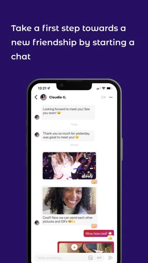 Take the first step towards friendship by starting a chat. Say ‘hey’ to as many people as you want. Emojis encouraged.