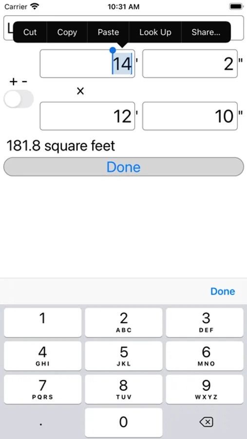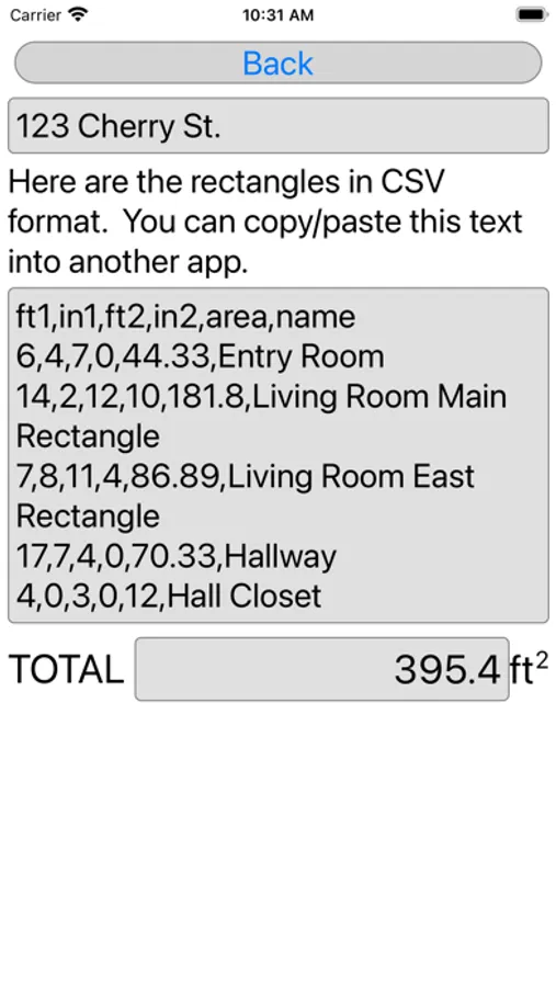 This app is a specialized calculator for computing square feet of floor area. Enter length and width measurements for any number of rectangles, and the app will calculate the total number of square feet. The app works for any shape that can be broken into rectangles. You can enter dimensions in feet, inches, or both. The app also allows you to copy calculations as CSV text, which can be pasted into another app.