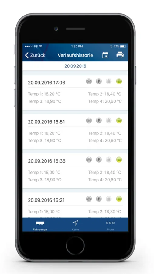 Furthermore it enables the pdf creation and detailed display of the temperature recording history and facilitates simple mobile printing.