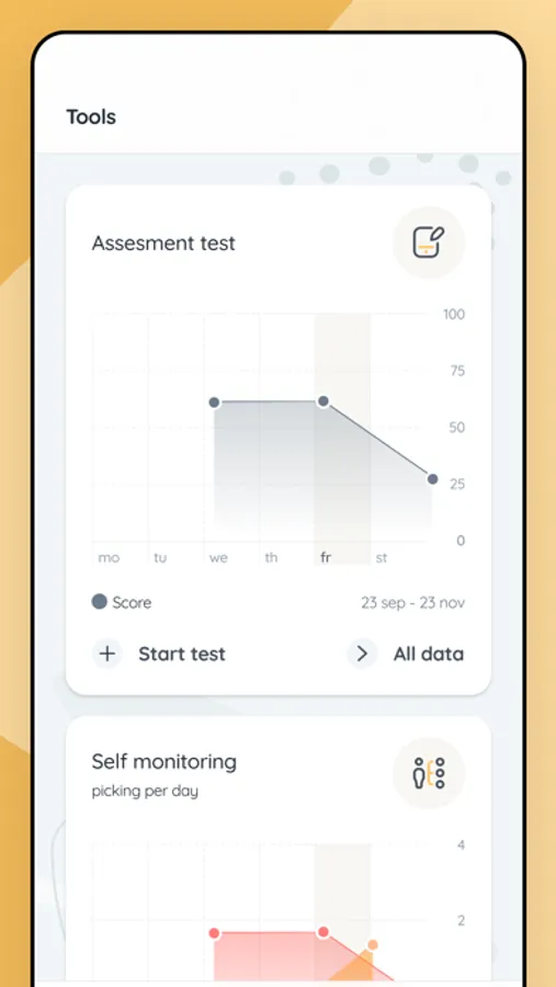 Therapy: Already seeing a psychologist about your picking? Enhance your therapeutic process by using this app, and share the data with your therapist. Or, subscribe to our paid program and receive real-time communication with experienced therapists specializing in skin picking disorder. These experts provide personalized guidance, professional advice, and support throughout your healing process.