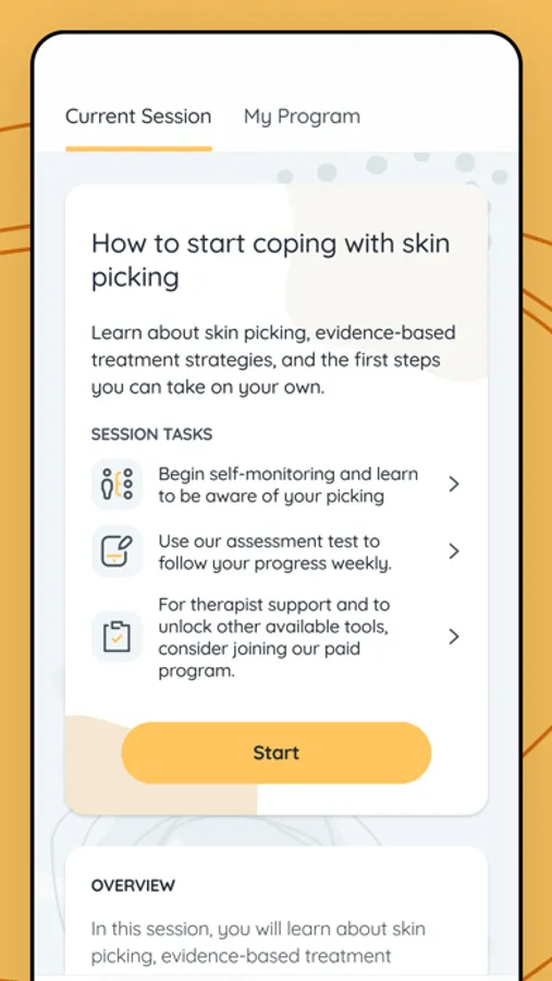 Personalized Treatment Program (Paid Subscription): Receive a customized treatment plan tailored to your specific needs by an expert therapist. This program will help you address the underlying causes of your skin picking and allow you to develop healthy coping mechanisms.
