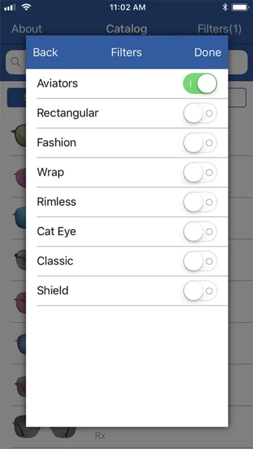 • Quickly filter by frame size, prescription parameters, lens color, lens material and other categories to find the perfect sunglasses for your customer.