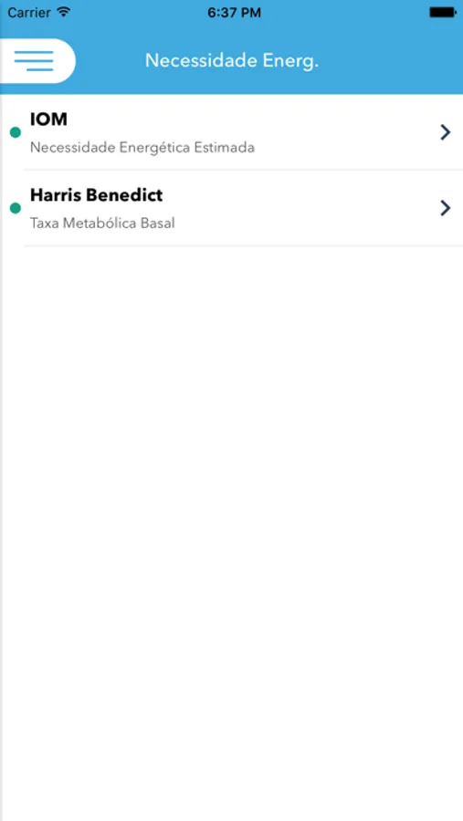 - Cálculo da Necessidade Energética (IOM e Harris Benedict);