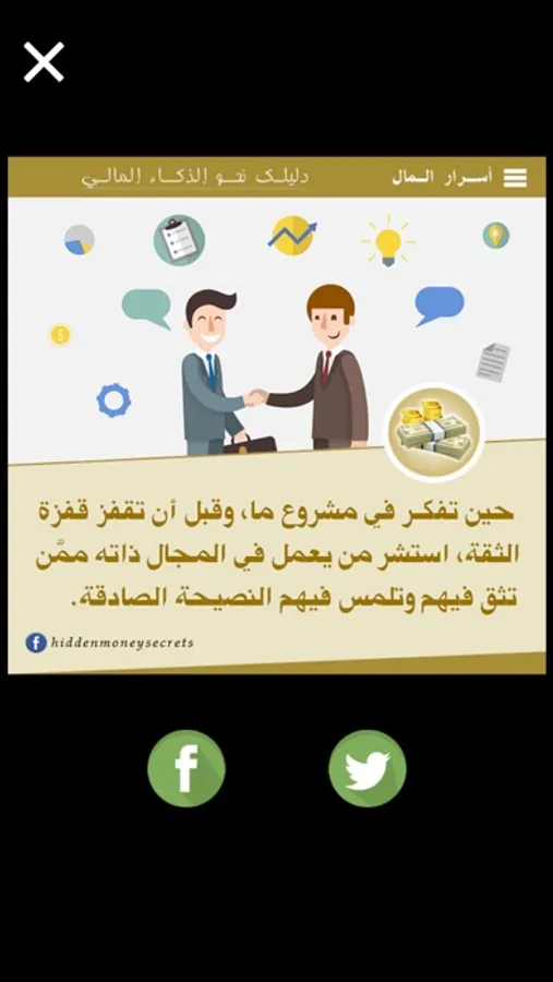 هذا التطبيق يحتوي على نصائح و إرشادات ذهبية تؤدي لرفع مستواك المالي.