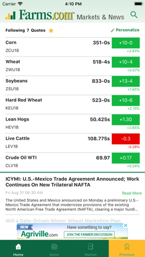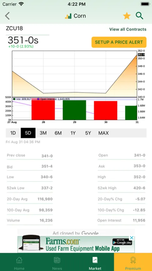 Get the latest agricultural commodity prices and farming news. The Farms.com Markets app provides up to date quotes, futures contracts, charts, and news on your mobile device. Some of the features include: