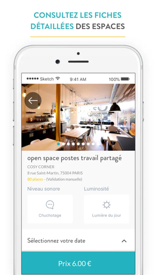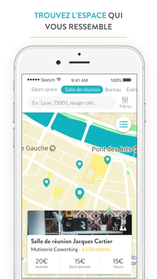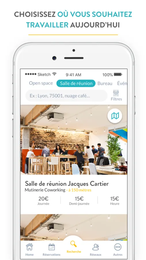 En quelques touches, visualisez tous les espaces à proximité : coworking, café-wifi, centre d’affaires... Filtrez selon vos besoins, accédez à une fiche détaillée de l’espace (services, tarifs, horaires...) et réservez votre place en toute simplicité !