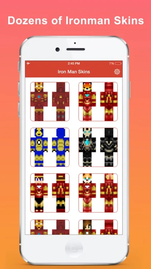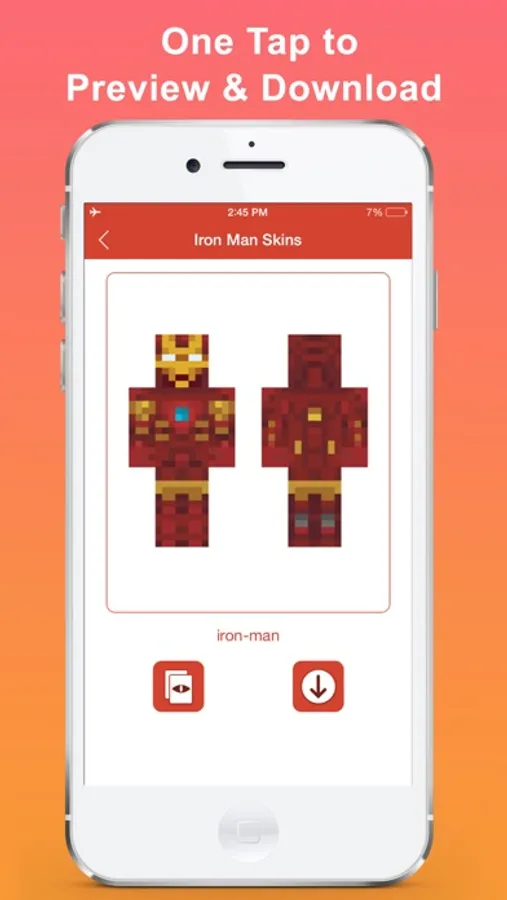 Dozens of ironman skins are available for Minecraft now! Download this app for free and you can find various ironman related skins inside.